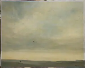 הציור כפי שהגיע לסדנה שלנו, ראו את הקצוות שהיו מכוסים עם המסגרת, שם הצבע דומה למקור