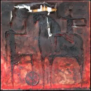 שמן על בד: כתמי עובש, כתמי פיח – ציורים שהיו בתוך חלל בעת שריפה.