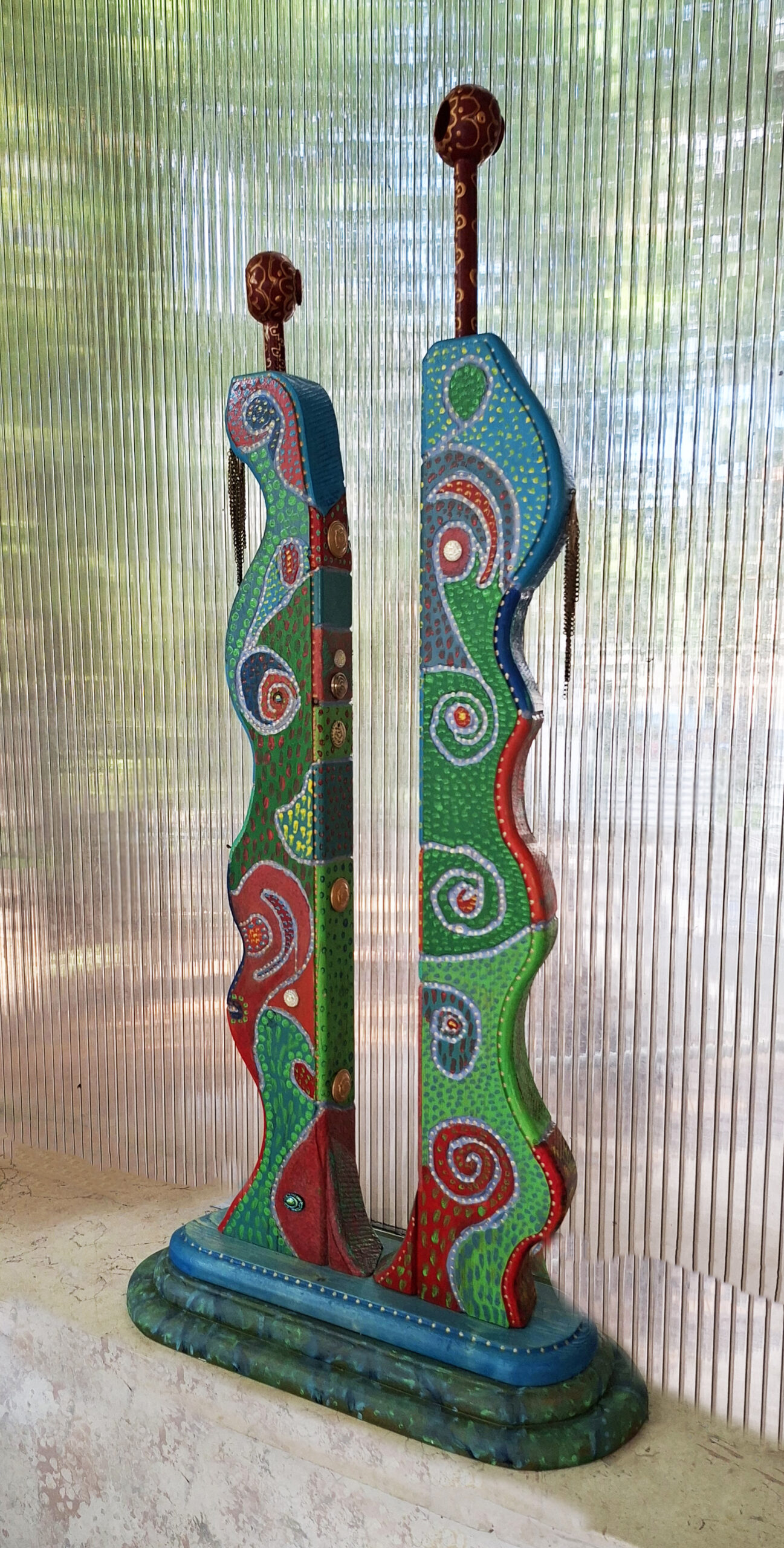 כמו יתר הטוטמים בסדרה, גם זה עשוי עץ, צבוע בצבעי אקריליק, ומשובץ בפריטים קטנים שנושאים זיכרונות ותקוות — עדויות לשותפות שנבנית מדי יום.