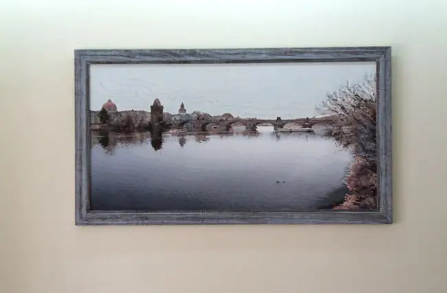 ציור שהמסגרת כיסתה את הקצה העליון- דבר שפגע בהרמוניה של הציור, הציור הותקן על רקע שנצבע במיוחד ורק אז הותקנה מסגרת תואמת