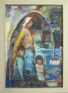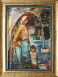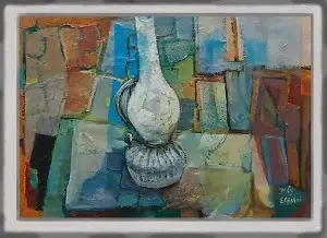 ציור שמן עם המסגרת המקורית והחדשה