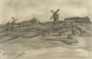 הציור מתאר טחנות רוח על הגבע של מונמארט, עם מחצבה למטה, המקום המתואר הינו במרחק של כמה דקות הליכה מהדירה שוינסנט שיתף עם אחיו תיאו. היצירה  נמכרה ב 1911 על ידי אלמנתו של תיאו,  ג'ו בונגר, לסוחר בהארלם, מאז הציור נעלם מעיני הציבור, עד שבשנת 2014 נרכש על יד הקרן.